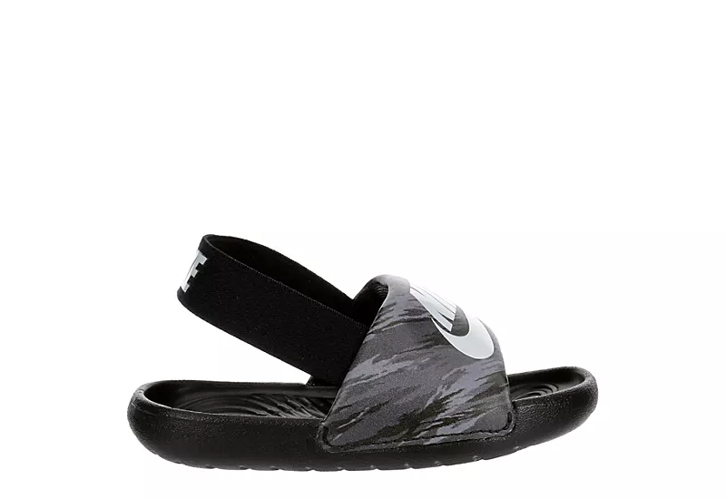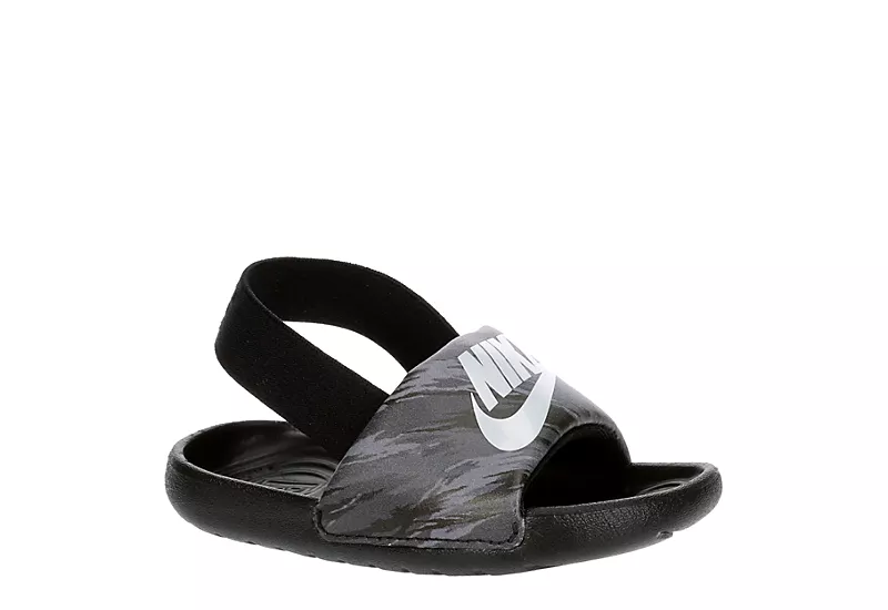 Running around the house or outside on a hot day, give his little feet a break with the cool Kawa Slide TD infant boys’ sandal by Nike. The heel strap keeps the fit secure, while a foam footbed provides plush, lightweight cushioning as he moves.Â