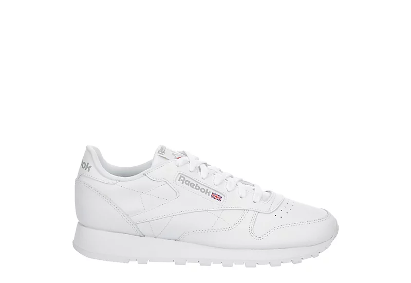 The Reebok Classic Leather men’s sneaker takes inspiration from the past. With a leather upper featuring authentic branding details and lace-up closure for a secure fit, this sneaker also has a padded collar & tongue for added comfort. A foam sockliner and EVA midsole support your feet, while the rubber outsole provides excellent traction.Â