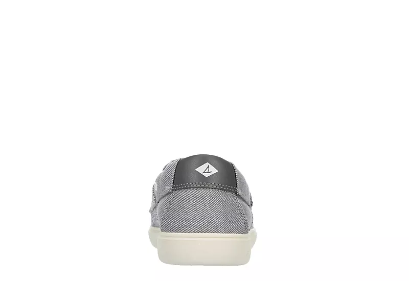 Update your classic nautical look with the Outer Banks men’s boat shoe from Sperry. This slip-on shoe features a soft salt-washed twill upper with breathable textile lining, dual elastic gores for an easy on and off fit, and an EVA footbed that offers all-day comfort and support. The non-marking rubber lug outsole is incredibly durable with molded Wave-Siping™ that delivers premium wet and dry traction.